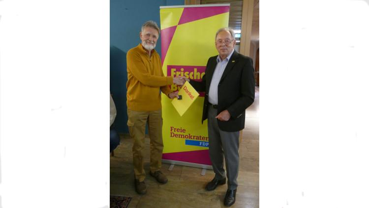 Christian Engert wurde in Anwesenheit vom Kreisvorsitzenden Heinz Hilgendorf anlässlich seiner 60- Jährigen FDP Mitgliedschaft die vom Parteivorsitzenden Christian Dürr, dem Landesvorsitzenden Dr. Michael Ruoff und dem Kreisvorsitzenden Heinz Hilgendorf unterzeichnete Ehrenurkunde, die ihm verliehene Theodor Heuss Medaille in Gold und ein Geschenk des Kreisverbandes Rosenheim-Land in Anerkennung seiner langjährigen Arbeit für unsere Partei auf Bundes-, Landes- und Kreisverbandsebene überreicht.